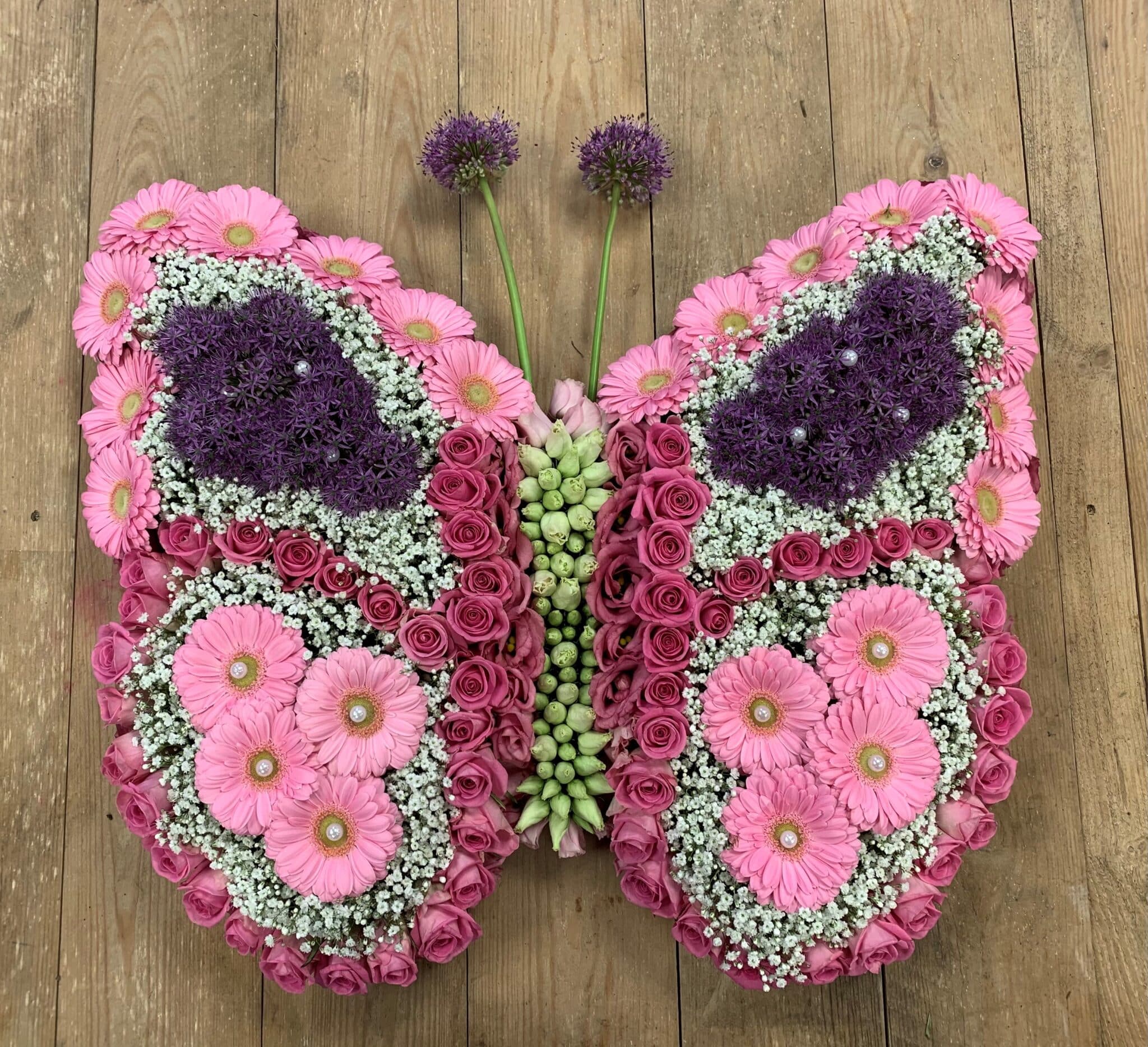 60 cm x 60 cm hiermee mag je deze wel een grote vlinder noemen verkrijgbaar in blauw en roze maar ook andere opties zijn mogelijk