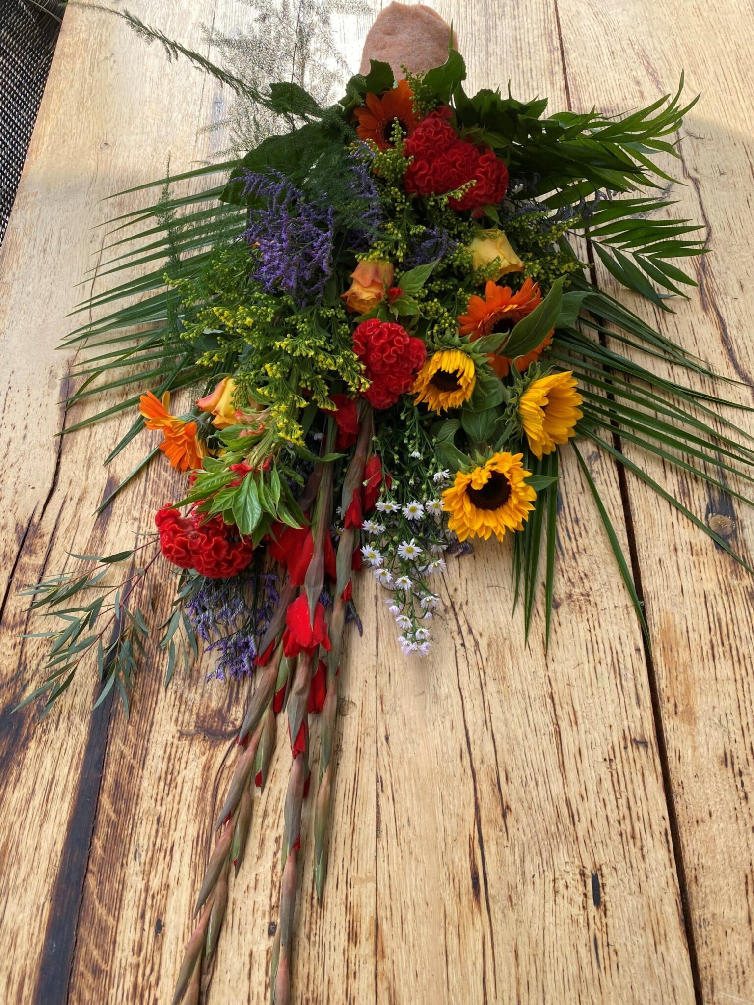 Dit bijzondere boeket wordt speciaal gemaakt om bij een afscheid neer te leggen.