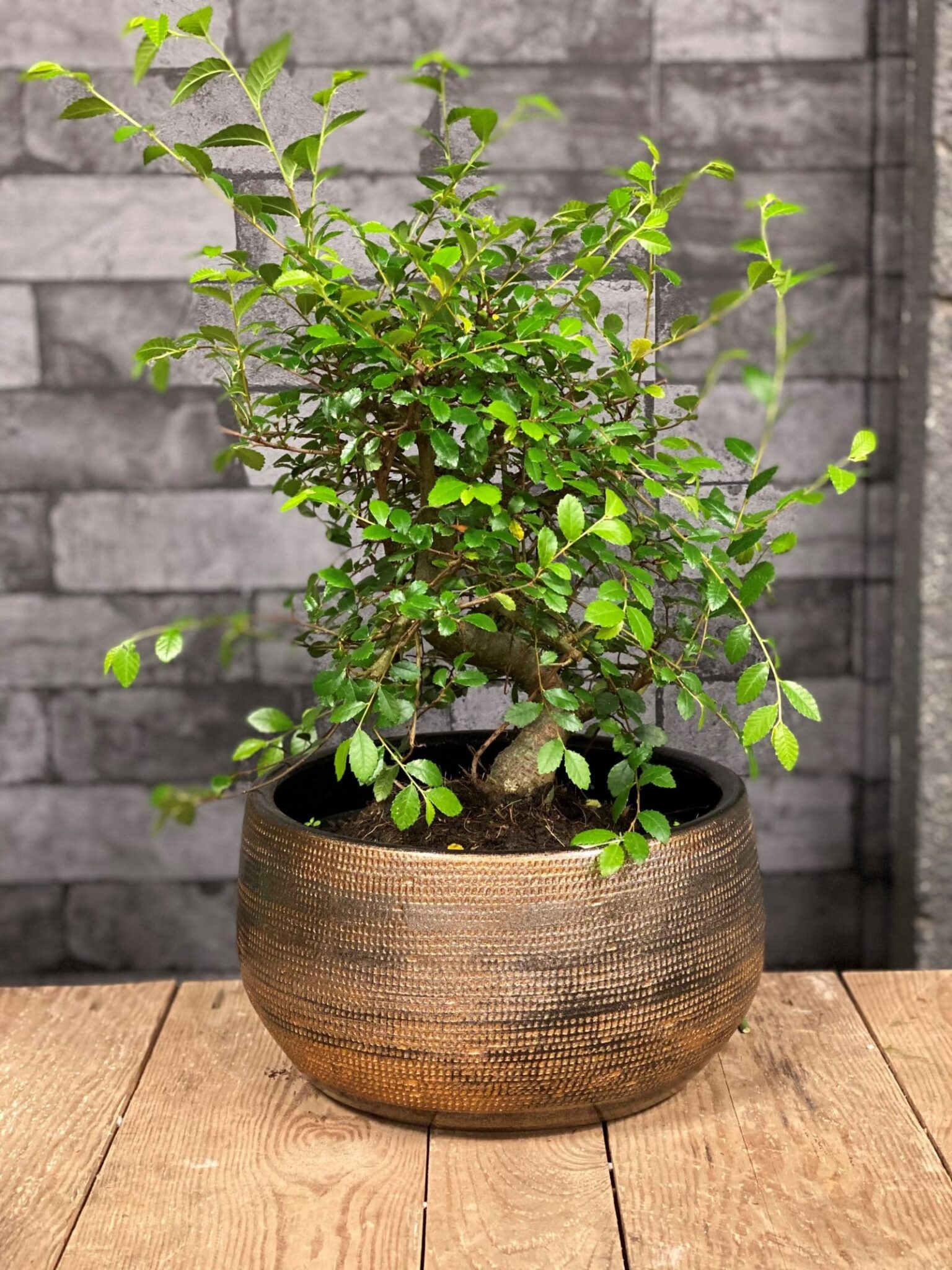 De Ficus is ook wel bekend als de Chinese Banyan, Gordijnvijg of Indiase Laurier. Met name in de zomer leeft dit boompje helemaal op. De Ficus is erg leuk om aan je interieur toe te voegen, dankzij zijn aparte vormen. Deze Bonsai ziet er vanuit elke hoek weer anders uit. Daarnaast staan Bonsaibomen in Japan symbool voor hun cultuur en wordt daar geloofd dat ze geneeskrachtige werkingen hebben.