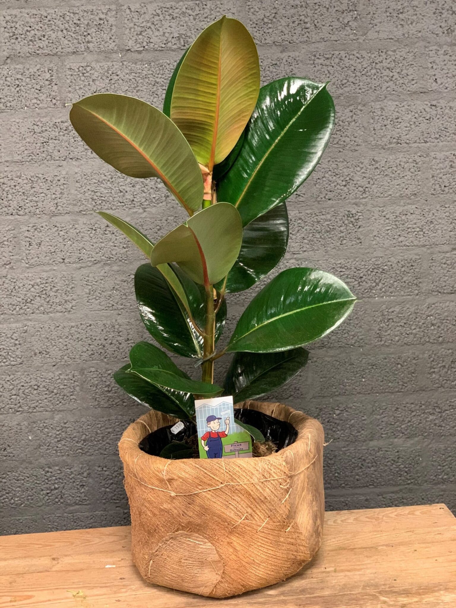 Ficus Robusta in royale kokosmand totale hoogte 75 – 80 cm