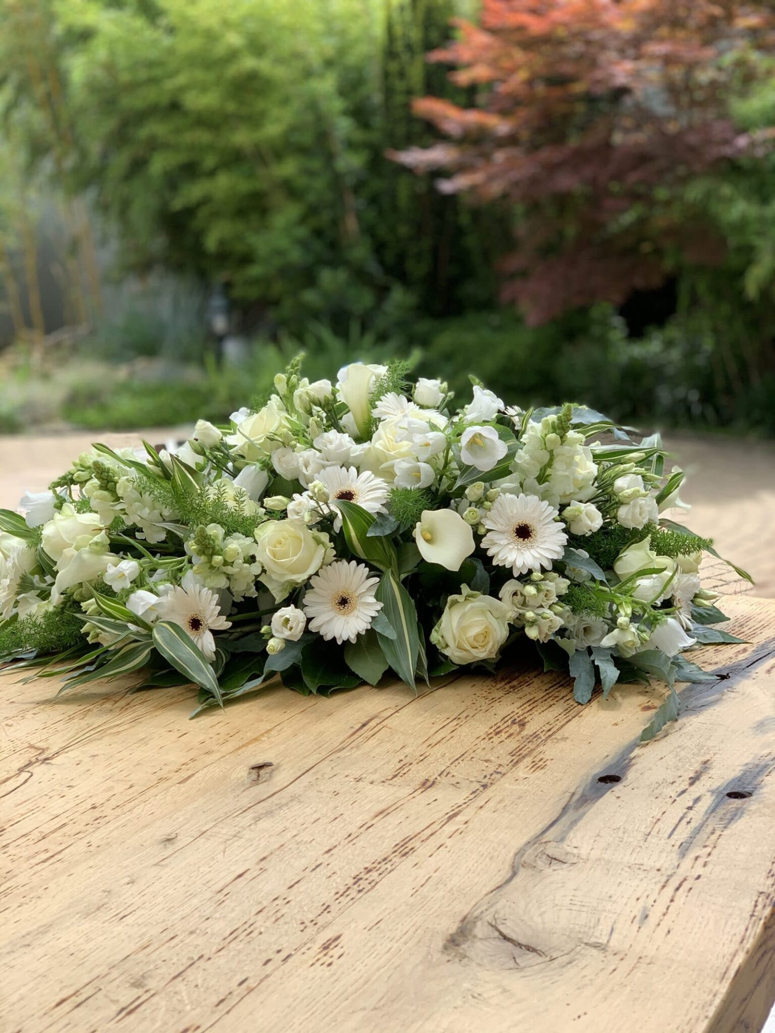 Dit rouwarrangement is ook geschikt voor natuurbegraafplaatsen, indien gewenst maken wij het op een biologisch afbreekbare ondergrond.